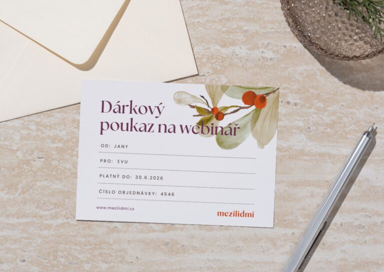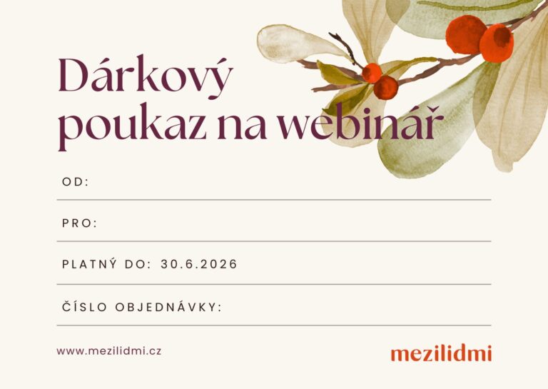 Vánoční dárkový poukaz na naše webináře umožní obdarované*mu vybrat si z nabídky témat zaměřených na mezilidské vztahy, osobní růst a porozumění sobě i druhým. Dárkový poukaz je flexibilní, jednoduchý k uplatnění a platí na kterýkoli z dostupných online kurzů.