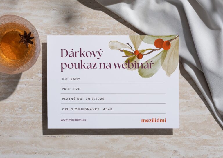 Vánoční dárkový poukaz na naše webináře umožní obdarované*mu vybrat si z nabídky témat zaměřených na mezilidské vztahy, osobní růst a porozumění sobě i druhým. Dárkový poukaz je flexibilní, jednoduchý k uplatnění a platí na kterýkoli z dostupných online kurzů.
